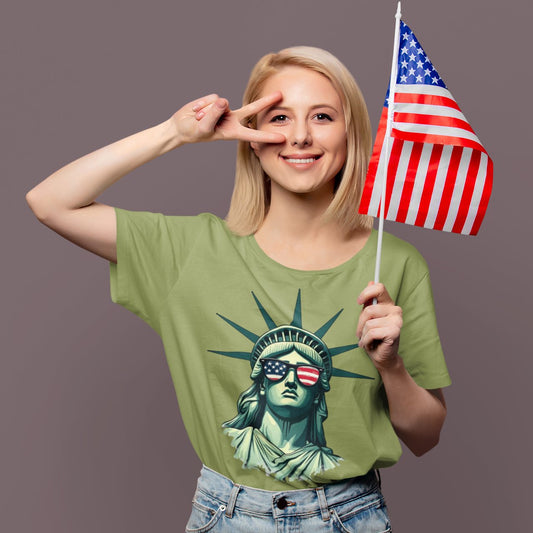 Lady Liberty in Shades – Funny Patriotic USA Pride T-Shirt