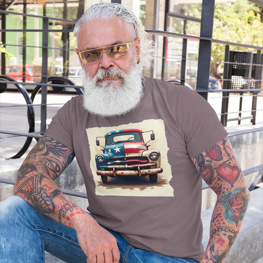 Classic American Pickup with Flag – Vintage USA Patriotic T-Shirt for Men