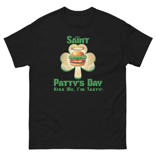 Saint Patty’s Day Funny Burger T-Shirt – Kiss Me, I’m Tasty!