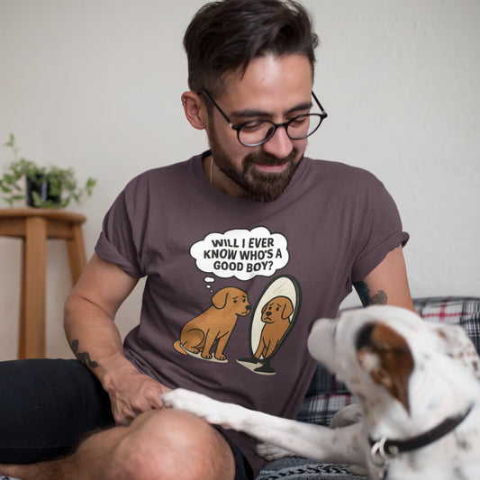 Who’s a Good Boy – Sad Dog Mirror T-Shirt for Pet Lovers
