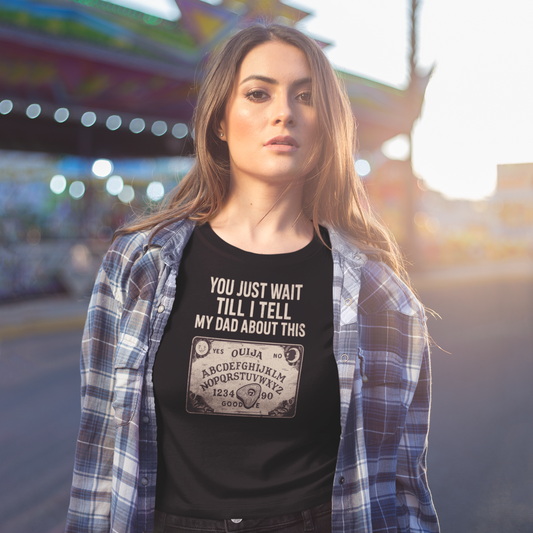 You Just Wait Till I Tell My Dad About This – Funny Speak To The Dead Board Tee for Spooky Sass